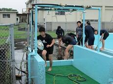 午前中、5,6年生でプール掃除を行いました。曇り空のもと、若干肌寒い感じもしましたが、子どもたちは、ブラシを使ったりしながら協力してきれいにしていきました。来週から始まるプールでの学習が、これで気持ちよくできそうです。5,6年生の皆さん、お疲れさまでした。