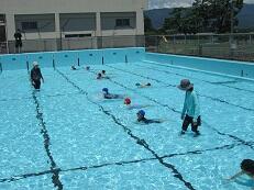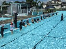 今年はコロナウイルス感染症の影響で、プールでの学習が延び延びになっていましたが、本日からプールでの学習を開始しました。今日は、1年生と2年生がプール開きを行いました。例年だと1,2年生は小プールを使って学習していますが、密を防ぐために大プールの水位を落として、大プールで行うことにしました。青空のもと、子どもたちは気持ちよさそうにプールでの学習を楽しんでいました。