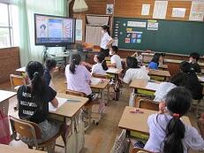 5年生が学級活動の時間に「情報モラル」について学習しました。この時間のめあては「SNSとのよりよい関わり方について考えよう」です。子どもたちの実態として、自分のスマホを持っている、あるいは親のスマホを借りて使っているという児童が9割ぐらいいました。そのくらい多くの子どもたちがSNSと関わっているという実態も分かりました。授業の中では、映像教材「SNSで思わぬトラブル」を視聴して、トラブルが起こった原因や、どうすべきだったかを考えました。