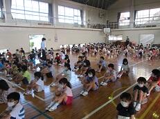今日、第1回目の全校体育を行いました。1回目ということで、気を付けの姿勢や礼の仕方等、基本的なことの説明、練習をした後に開会式等の練習を行いました。今年の運動会では、大きな声を出すことができません。その代わり、体を大きくいっぱい動かして、元気に一生懸命取り組む姿を見せてほしいと子どもたちに話をしています。まだ暑い日が続きますが、子どもたちの頑張りに期待しています。