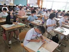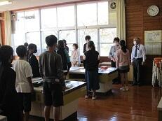 昨日、本校を会場として「国光原中学校区小中連携研究会」を実施しました。この研究会は、国光原中学校、多賀小学校そして通山小学校の3校が連携した教育の在り方を探ることにより、「知・德・体」の調和のとれた児童生徒の育成を目指すことを目的としています。