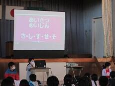 10月の月目標は「気持ちのよいあいさつをしよう」になっています。普段から、きもちのよいあいさつを心掛けている子どもたちも多いのですが、さらによくするために運営・生活委員会の子どもたちが中心となって、「さ・し・す・せ・そ」を呼びかけました。「さ・し・す・せ・そ」とは、