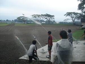 5年生が植えた稲がすくすくと育っています。今30㎝近く伸びています。すぐそばのプールでは、3年生が元気に「浮く」練習をしていました。田んぼの苗は、このプールの水をいただきながら、子どもたち同様に育っています。