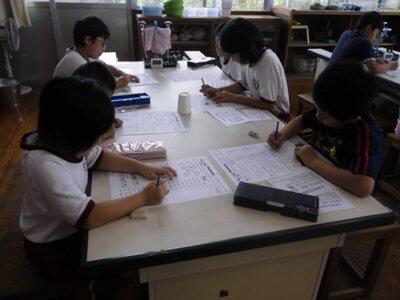 今日は、第1回通山っ子計算検定の日でした。検定内容は、各学年の1学期までに算数で学習した内容です。90点以上が合格です。受験したのは、1年生~6年生までの希望者で、今回は、全校児童193名中111名が受験しました。時間いっぱいみんながんばっていました。結果は、10月3日に受験者全員に通知し、合格者には、認定証を発行します。結果が楽しみですね。次回の検定は、1月に予定しています。算数の学習に限らず、2学期の学習も目標をもって、しっかり取り組んでいってほしいと思います。