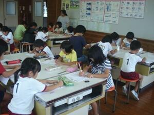 学校で水泳の練習を行うのも今日が最後でした。今日の午後は、5、6年生が水泳記録会参加のための練習、個人の記録挑戦のための練習に取り組んでいました。水泳記録会に参加する子どもたちは少しでも速く、個人記録に挑戦する子どもたちは少しでも長く、と一生懸命に練習していました。この夏の練習で、記録が伸びたようです。夏休みも練習を積んで、さらに速く長く泳げるようになってほしいと思います。
