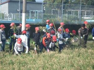 5年生が稲刈りを行いました。昨日の雨の影響で足場が悪いところもありましたが、全て子どもたちが手作業で刈り取ることができました。いい色に色付いた稲穂を刈り取りながら、田植えをしたときのことも思い出していたことでしょう。今日もJA尾鈴青年部の方々に指導していただきながら作業を進めました。刈り取った稲の一部は、掛け干しもします。どんなお米が出来上がるかみんな楽しみにしています。