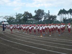今週は運動会予行練習が行われます。明日実施の予定ですが、天候が心配されるところです。今日は、予行練習前の全体練習として、全校児童による「エール交換」等の練習を行いました。団長の掛け声に合わせて、全員で元気な声を出す練習を繰り返しました。