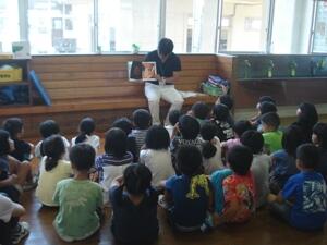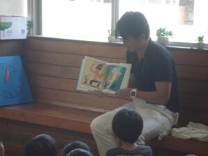 今日は、子どもたちが楽しみにしている「ふれあい読書」の日でした。毎回、読み聞かせボランティア「ノバセンブラ」のみなさんに読み聞かせをしていただいています。今日の1年生の読み聞かせには、お父さんが登場されました。いつもとは違う雰囲気の中、子どもたちは興味深くお話を聞いていました。お父さんの読んでくださるお話の世界に引き込まれていたようです。ウルトラマンが登場するお話も読んでいただきました。お父さんには、仕事前の忙しい中、おいでいただきました。その後、お父さんは、子どもたちに「先生の言うことを聞くんだよ」