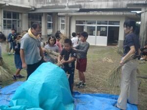古屋様には、毎年3年生が「昔の道具」を見学させていただきます。この5年生も2年前に見学していますが、実際に使うことができて貴重な経験ができました。