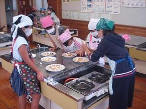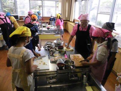 今日は、4年生の総合的な学習の時間で浜うどん作りの出前授業を行いました。今年も、チームがははの皆さんの協力を得て行いました。子ども達は、包丁で材料を切ったり、煮たりと、がははの皆さんのご指導のもと、楽しく学習を進めていました。大きなシイラを調理するのを見るのが初めての子どもも多かったようです。調理後は、おいしい浜うどんとシイラのてんぷらをおいしくほおばっていました。今後も、郷土の歴史や文化について今後も学習を進め、ふるさと川南について理解を深めて行く予定です。