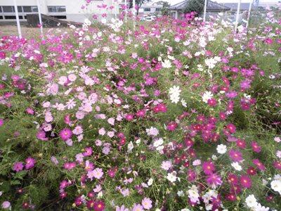 ずっと、すっきりしない天気が続いています。今週、月曜日から始まる予定だった持久走の練習も金曜日になりました。また、今日予定されていた、2年生のミカンちぎり体験学習も金曜日に延期になりました。予定は、いろいろ変更になりますが、奇跡的に昨日、今日の昼休みだけは雨が降らず、水はけのよい運動場では、子どもたちが元気に遊んでいます。やはり、昼休みは、体を動かすのが一番です。また、学校園のコスモスは、5月から青々と茂っていたのですが、なかなか花が咲かず心配していたコスモスも、ようやく満開になりました。やはり、コスモスは秋の花のようです。