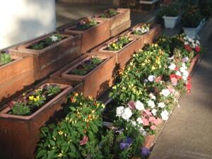 昨日の「小中合同クリーン作戦」の中で準備した花苗のポットを並べました。パンジー、ビオラ、金魚草がこれから元気に育ってくれることを楽しみにしています。中学生も学校の行き帰りに成長の状況を見てくれることでしょう。通山小では、他の花の苗も少しずつ育っているところです。これから、子どもたちと一緒にいろいろな花の苗を植えて、花いっぱいの通山小にしたいと考えています。