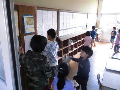 夏休みが終わり、2学期がスタートしました。子どもたちは、夏休みに取り組んだ課題とたくさんの思い出をもって登校して来ました。どの子も元気そうで安心しました。始業式の後、各学級で夏休みの振り返りが行われたようですが、中には、夏休み作品発表会が行われた学級もあったようです。2学期も「頭」「心」「体」を鍛え、すくすくと成長してほしいと思います。