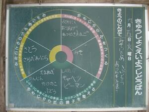 2学期のスタートとともに、給食も再開されました。子どもたちにとって毎日楽しみな給食です。これから、栄養面にも関心をもつことができるように、各教室の大型電子黒板に栄養指導板を映すことにしました。この栄養指導板は、毎日、保健給食委員会の子どもたちが書いてくれているものです。メニューとともに、栄養についても関心が高まることを期待しています。写真は、明日の給食メニューです。明日もおいしそうですね。