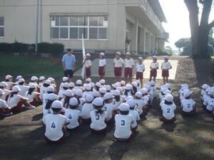 雨が心配されましたが、そんなに天候が崩れることもなく、予定通りに予行練習を実施することができました。各係の子ども達にとって初めての実践でしたので、はじめは戸惑うこともあったようですが、徐々に慣れて動きもスムーズになってきました。競技や応援も本番を意識しながら行いました。予行練習では、「競技」の部も「応援」の部も赤団が優勝しましたが、どちらも僅差であり、本番ではどうなるかわかりません。今日の結果を受け、子どもたちは、ますますやる気になったことでしょう。