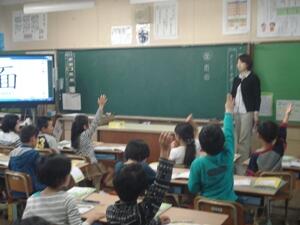 1年生の教室を覗いてみると、音楽の授業で、子どもたち一人一人が順番に、鍵盤ハーモニカで演奏をしていました。どきどきしながらも、みんな上手に演奏していました。聴く子どもたちの姿勢もよく、よい緊張感がありました。