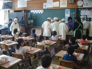 1年生も給食が始まり、今日が9回目の給食となりました。給食前の準備、6年生の準備を待つ態度、食べるときのマナー、片付けのルール…と覚えることがたくさんありますが、少しずつ慣れてきているようです。「給食おいしい」という声も聞かれます。