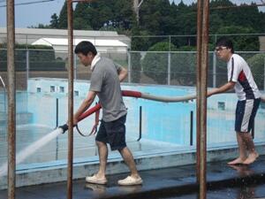 今年もプールでの学習が始まりました。各学年でプール開きを行います。子どもたちは、この日を待ちわびていたようで、みんな楽しそうに活動していました。安全に心掛けながら、子どもたちが水に慣れ泳力が向上するよう指導していきます。なお、今年もプール清掃において、地元消防団の方々にご協力いただきました。お陰で、子どもたちも気持ちよく学習できます。