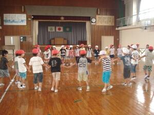 梅雨に入り雨も多い季節となりました。当然、外で遊べない日も多くなりますが、昼休みに体育館が使用できる日があります。昨日は、2年生が使用できる日でした。体育館を覗いてみると、2年生全員が元気に仲良く「花いちもんめ」で盛り上がっていました。たくさんの笑顔に雨空も吹き飛ばされそうでした。