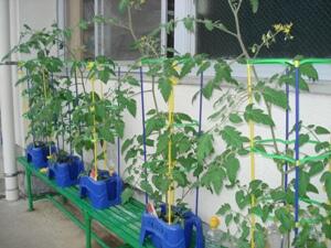 また、2年教室のベランダでは、一人一人が育てているミニトマトも元気に育っています。2年生の子どもたちと一緒に大きく育ってたくさん実をつけてほしいと思います。