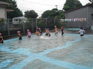 水にも慣れてきて、子どもたちがプールで元気に活動する姿が見られるようになりました。