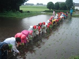 本日、5年生の子どもたちが、自分たちで育てた苗を使って田植えを行いました。JA尾鈴青年部の方々に教えていただきながら、学校田に手植えしました。時折強い雨も降る中でしたが、無事に終了しました。これから稲刈りまでの間に、観察、草取り、かかし作り等も行いながら、米作りを体験していきます。