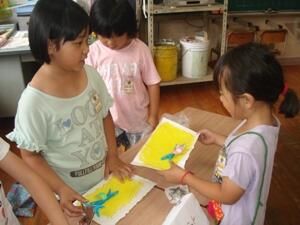 3年生は、みんな浮くのが上手で、男子全員、女子全員で、プールの中に大きな花を2つ咲かせていました。「すごいねえ、まるで演技を見ているようだ!」とほめられていました。
