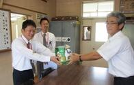7月22日(火)川南郵便局長、番野地郵便局長さんが来校され、ワールドカップ仕様サッカーボールをいただきました。ありがとうございました。しばらく玄関に飾り、2学期には子どもたちに実際に蹴ってもらいます。夢は大きく目標は高く、「目指せワールドカップ出場!!」