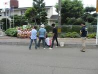 今日(9/27)は予想よりも雨上がりが遅く、準備はかなりの雨の中の作業となってしまいました。PTA運営委員、地区評議員、第1回奉仕作業に参加できなかった方総勢50名の皆さんが雨の中子どもたちのために準備をがんばってくださいました。本当にありがとうございました。参加いただいた皆さん、かぜなどひかれないようにお気をつけください。写真は万国旗張りの様子です。明日は朝6時頃にでっかい花火を上げたいです。