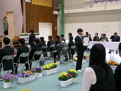 町長をはじめとする来賓の方々、在校生を代表して4・5年生の皆さんが見守る中、19名の卒業生が通山小学校を巣立ちました。