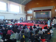 1月29日の日曜日、トロントロンドームで川南町生涯(しょうがい)学習大会が開催されました。この大会では、毎年、子どもからお年寄りまで、様々な取組や活動のようすが紹介されます。今回、小学生の部では、三大開拓地交流で、福島県矢吹(やぶき)町を訪問したときの体験が、6名の代表児童によって発表されました。東日本大震災の被災地のようすについても報告されました。