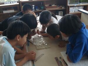 5年生は、理科の学習でこれから飼っていく「メダカ」を初めて観察していました。オスとメスはどこで見分けるのか、小さいメダカに神経を集中させていました。