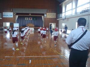 1年生の体育の授業。町で考案した運動にも挑戦しました。