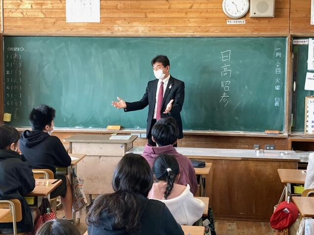 1月31日に生き方教室として日高昭彦川南町長に6年生に向けて講話をしていただきました。「何事も楽しい、できると思うこと」「とりあえずやってみる(5秒経つと脳がやらない言い訳を考える)」等々、子ども達だけでなく、大人も前向きになれるお話しをご自身の体験を交えながら話してくださいました。川南町の良さや町長のお仕事についてなど、子ども達の疑問にも分かりやすく話してくださいました。貴重なお話しを聞くことができた45分間でした。