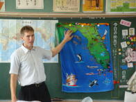 9月7日の金曜日、新しいALTのフィリップ・ソルディーニ先生が、通山小学校に来てくださいました。フィリップ先生は、アメリカのフロリダ州出身で、現在は日向市に住んでいらっしゃいます。ふるさとのことやご家族のことなどを紹介してくださいました。これからの外国語活動が楽しみです。