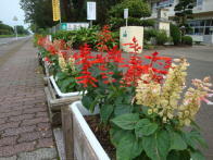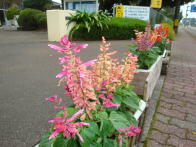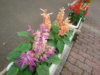 通山小学校では、例年、子どもたちといっしょに花を種から育てています。今年は、サルビアがいっぱい咲きました。そんな中で、ちょっと変わった種類のサルビアが咲いています。