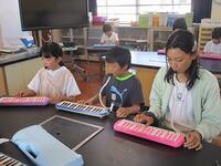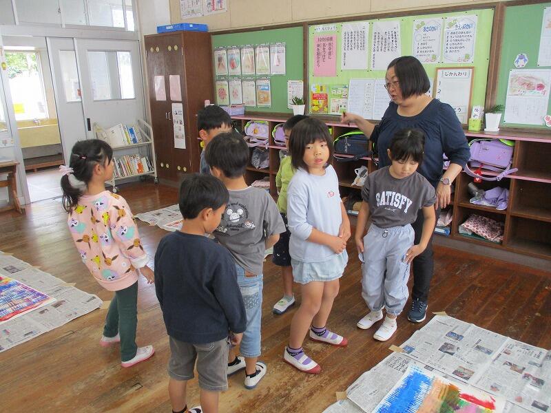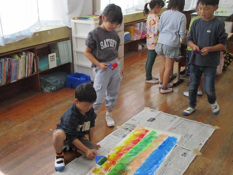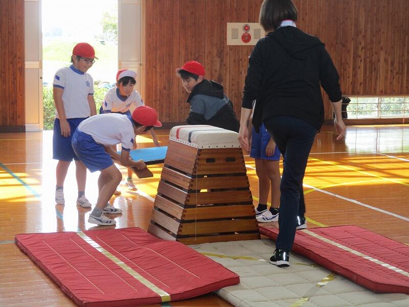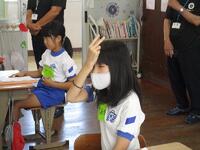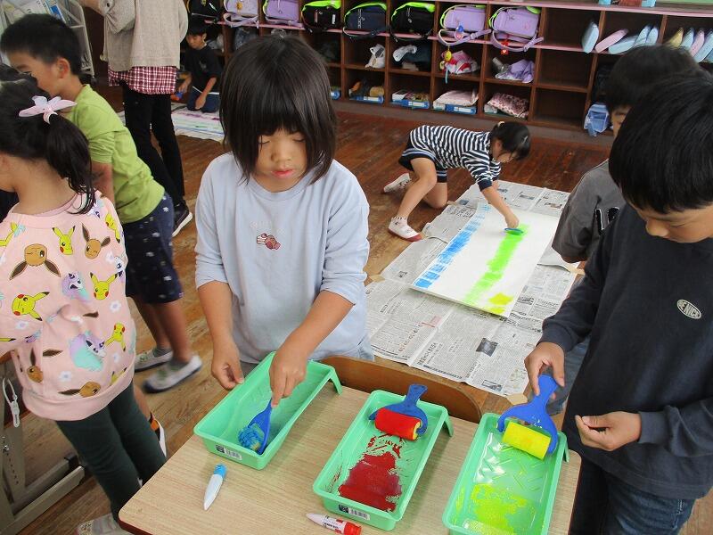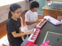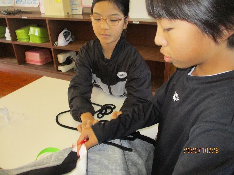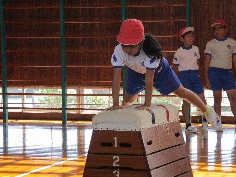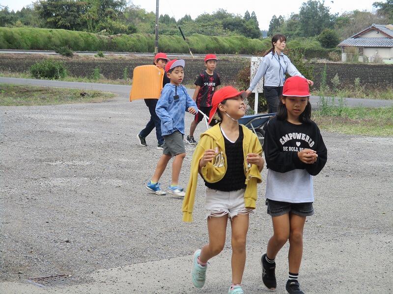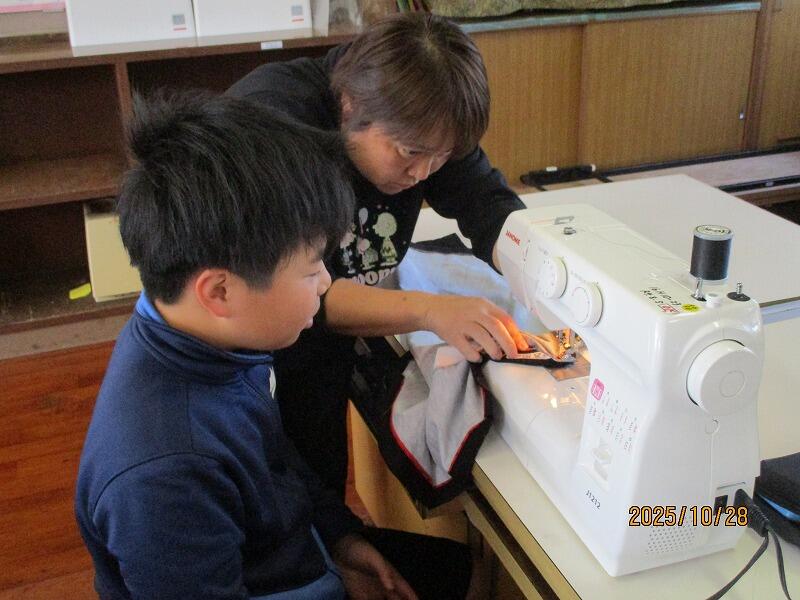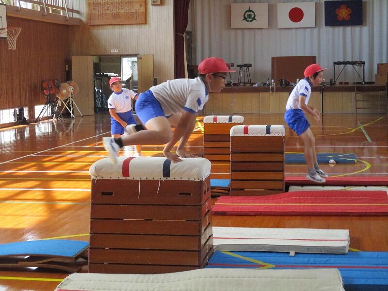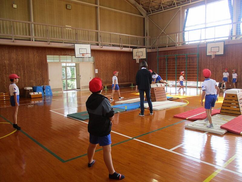 運動会に向けてフラッグの練習をしていました。フラッグを曲に合わせてなびかせる姿が、頼もしく見えました。教室は狭いため、児童会室と2か所に分かれて練習を行っていました。