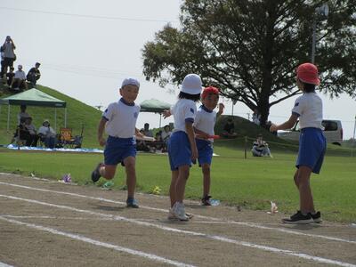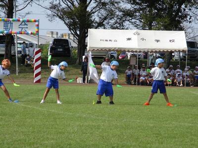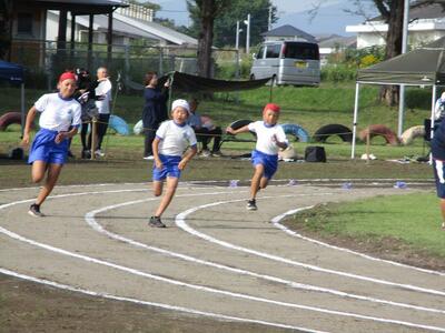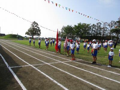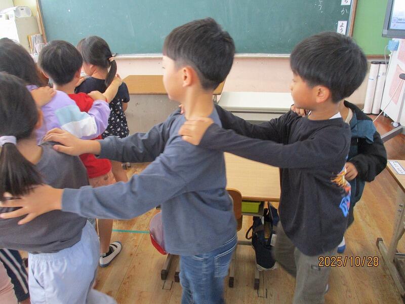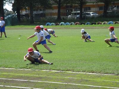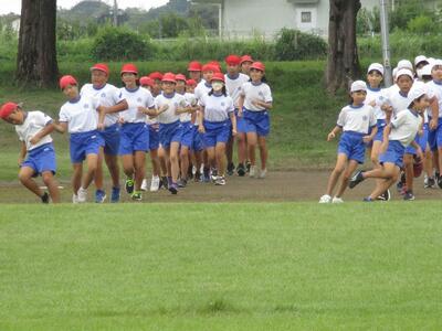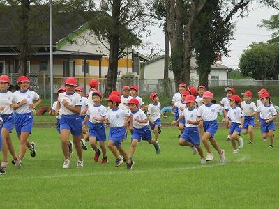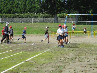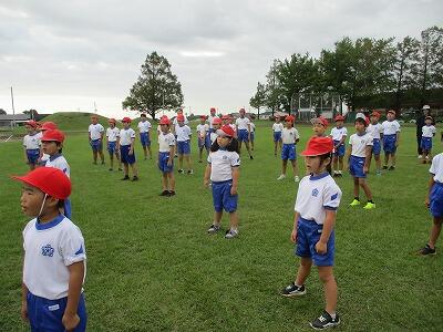 1・2年生は、今日の1時間目に運動場で運動会の練習をしました。今日初めて、ダンス隊形を確認しながら踊りました。子供たちは、初めて運動場でダンスを踊るということもあり、なかなか感覚がつかめず四苦八苦していました。2年生が1年生に声をかけてくれる場面もあり、互いに頑張る姿がとってもまぶしかったです。