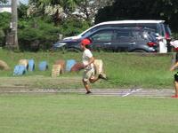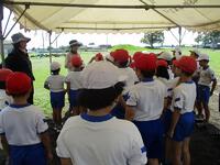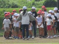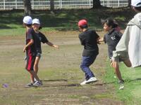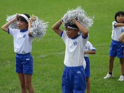 リーダーが、お手本を見せてくれた後、実際にみんなで一緒に練習しました。1年生は、初めて応援をするので、どうすればよいか戸惑っていたのですが、近くにいたリーダーが