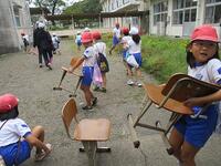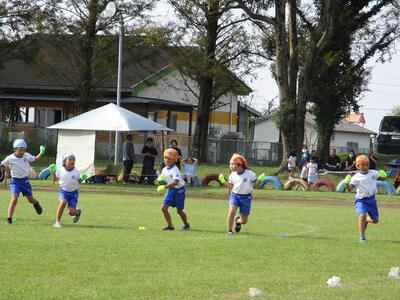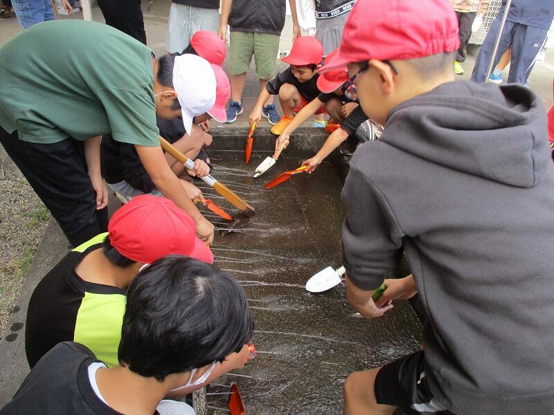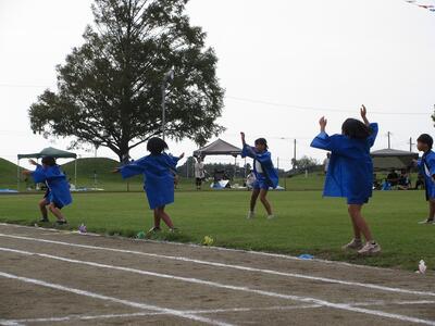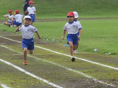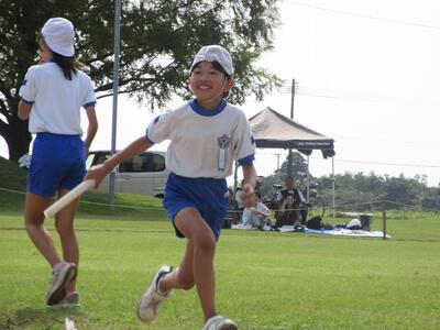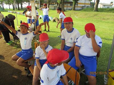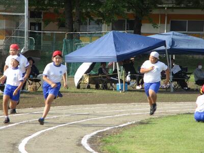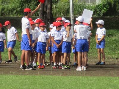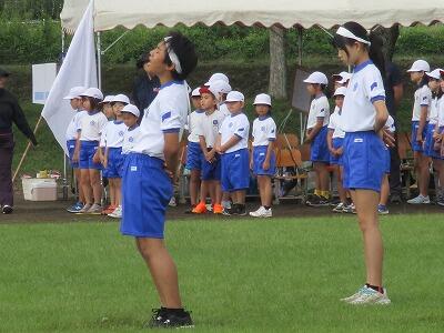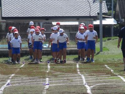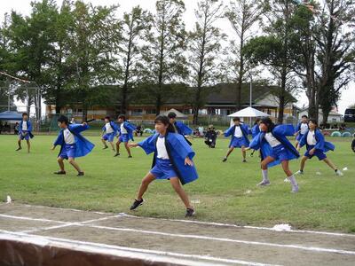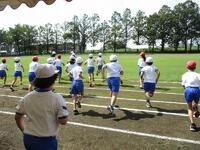 子供たちの掛け声が聞こえてくるたびに、私の心もだんだん盛り上がっていきます。休憩をはさみながら、再度、ソーラン節の練習をしています。少し休憩を取った後、徒競走の入退場の練習をしました。