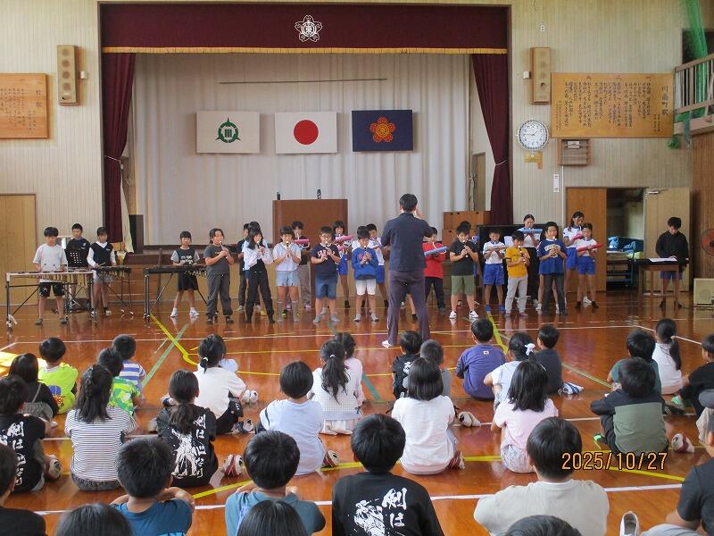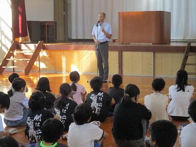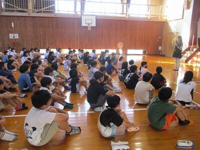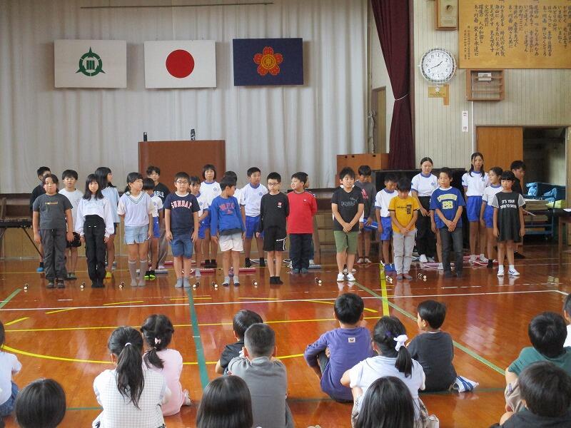 全校朝会の後、学校外の活動でも頑張っている児童の表彰を行いました。自分の得意なことをのばし、さらに活躍してほしいと思います。