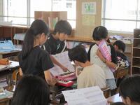 毎日、図書室に本を借りに行く児童や学年が多く、学級でも読み聞かせをしてくださっている先生もいらっしゃいます。学校全体で読書推進を図っています。