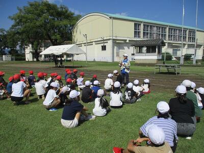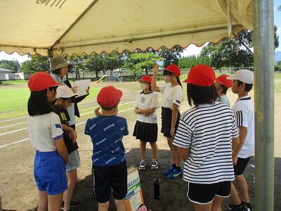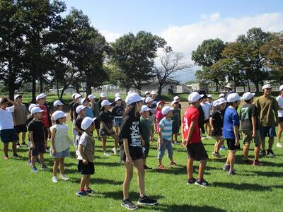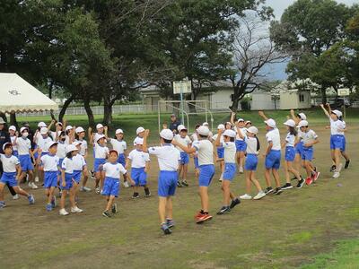 今日は、全校体育1回目。開会式の流れの確認と練習をしました。各団長・リーダーが中心となって、一生懸命頑張る姿がとてもすばらしかったです。また、今日は朝から暑さ指数も高かったので、熱中症予防のために、こまめに休憩を設定し、水分補給や休息を設けました。暑い中での練習でしたが、みんな本当によく頑張りました。
