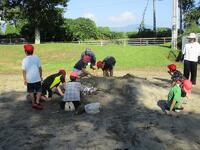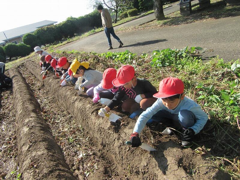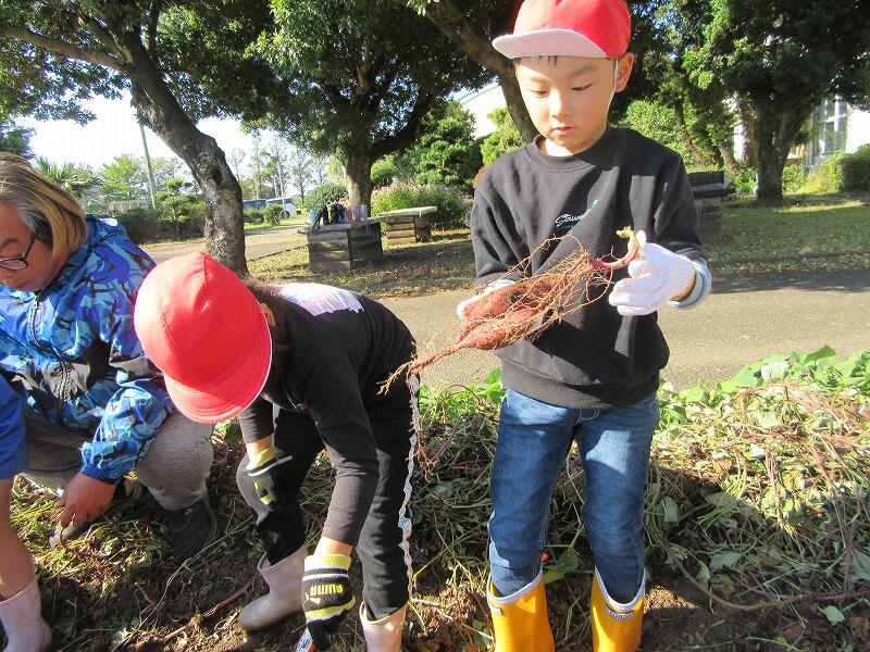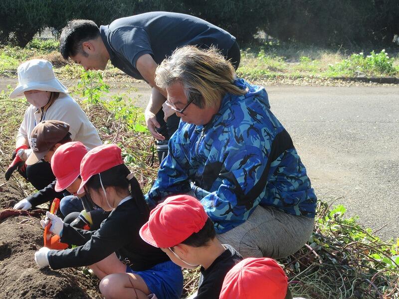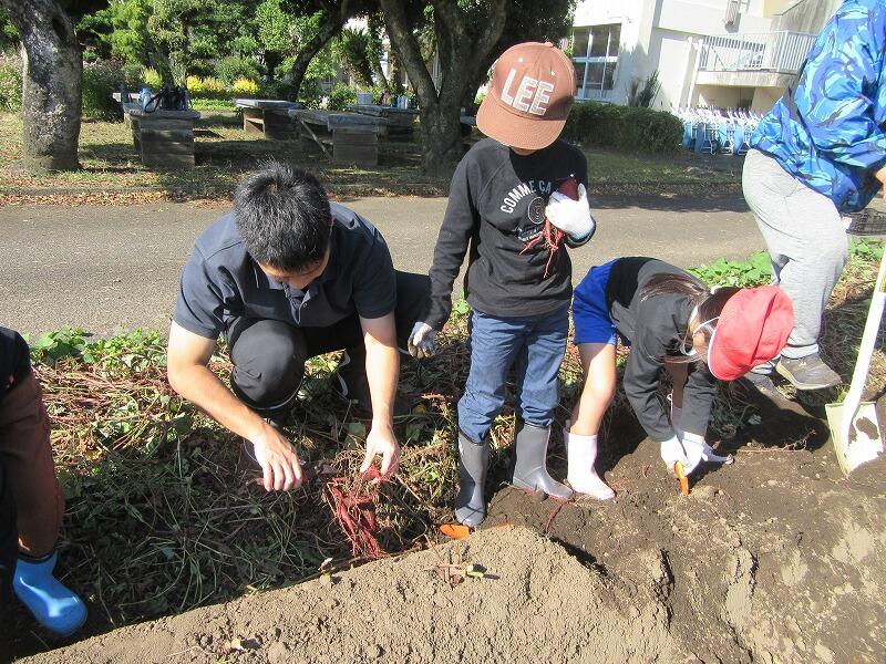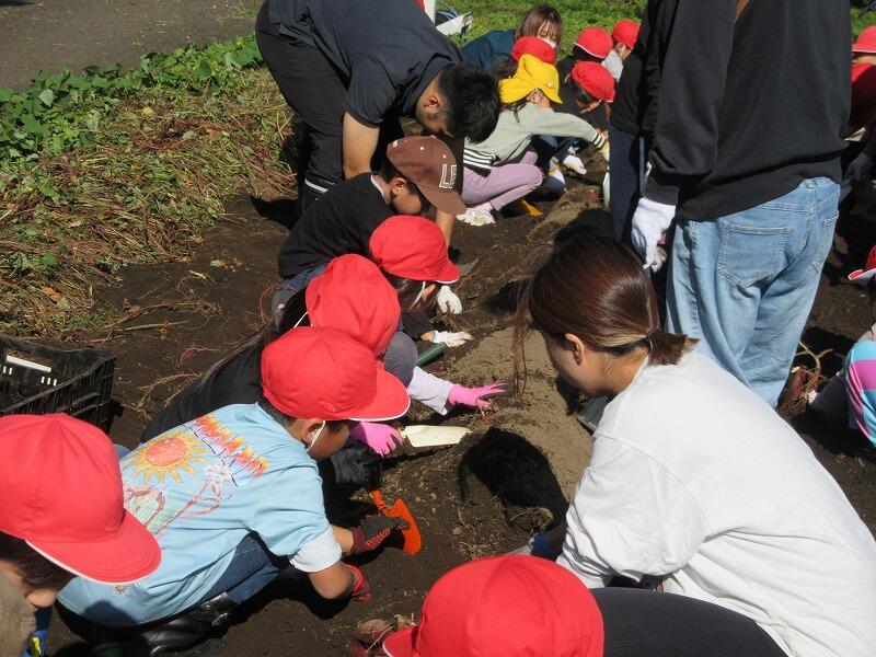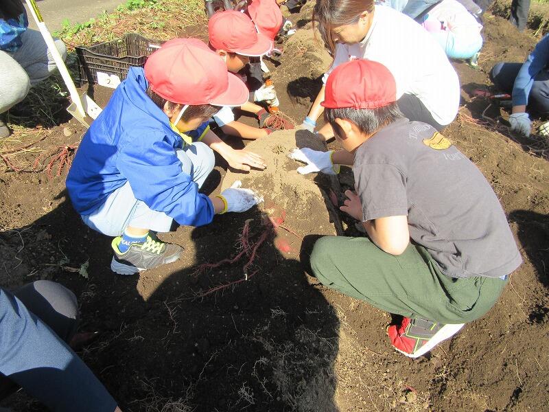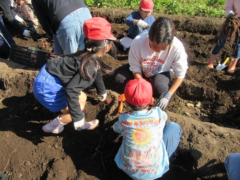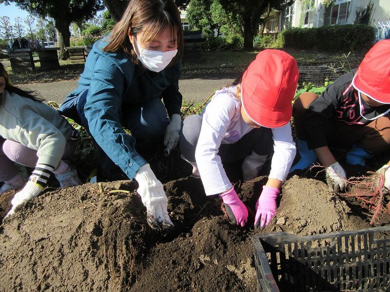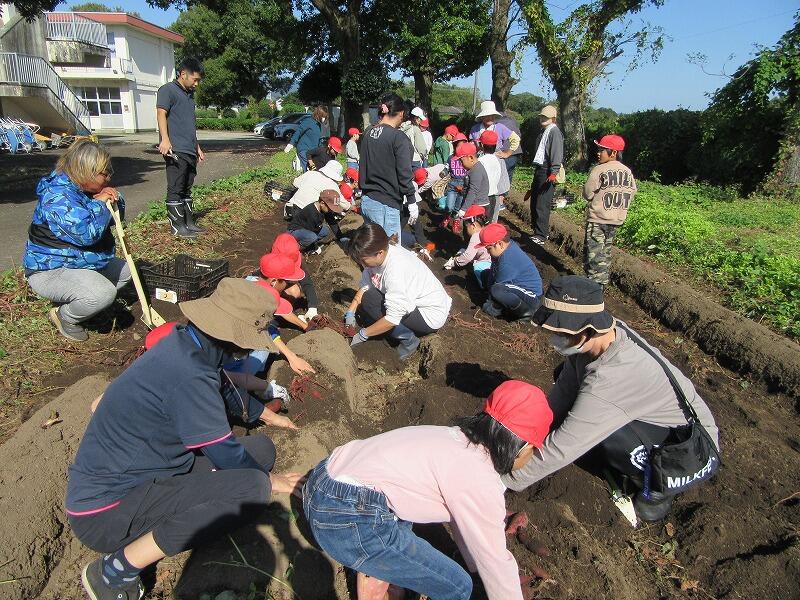 これまで一生懸命お世話してきた「おいも」を収穫する喜びを味わいながら、作業をどんどん進めていきました。保護者の方にも協力していただきました。