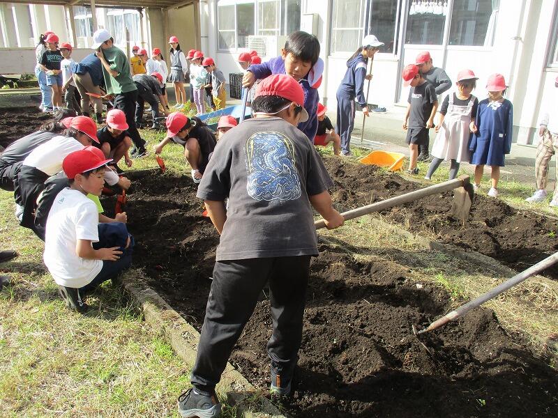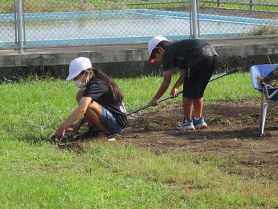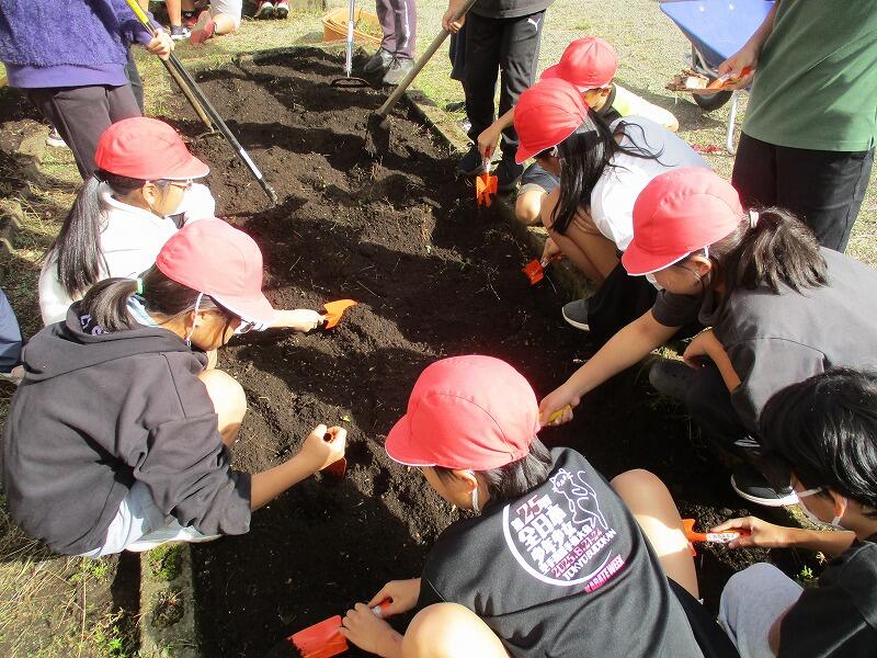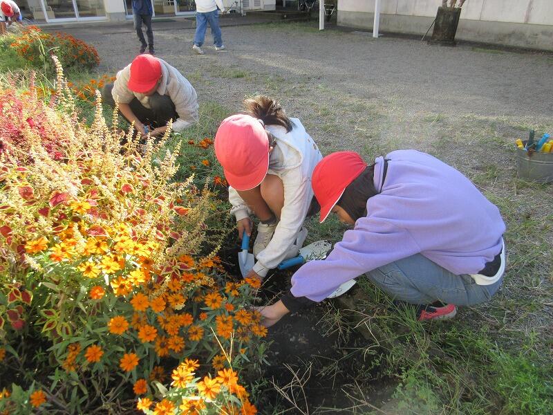 みんな黙々と作業を進めてくれてました。きちんと草を抜き、肥料を入れてふかふかの土に仕上げました。今度の花植えがとっても楽しみです。