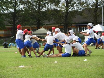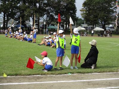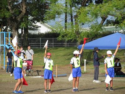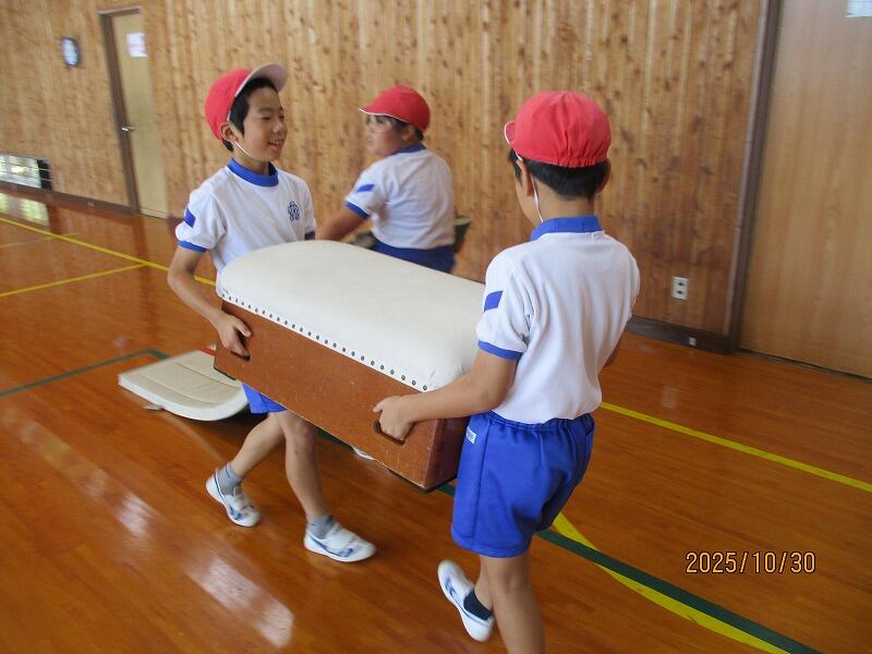 少しでも熱中症のリスクを回避できればと、全員で作業を行いました。テント設置後は、ライン引きや放送準備を行ったり、優勝旗等の準備を行ったりしました。運動会に向け、いろんな活動が始まっています。