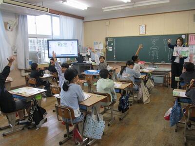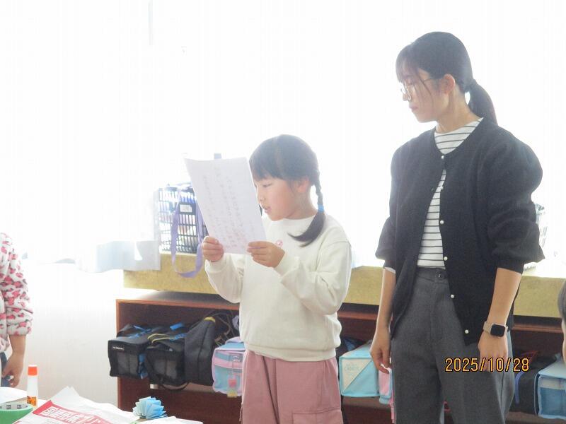 夏休みの思い出について英語を使って表現する練習をしていました。楽しそうに学習する姿が印象的でした。