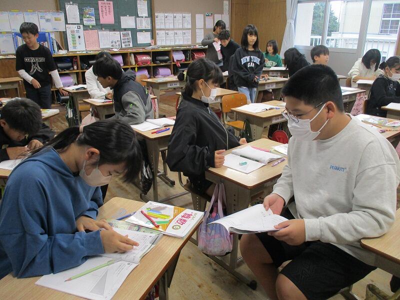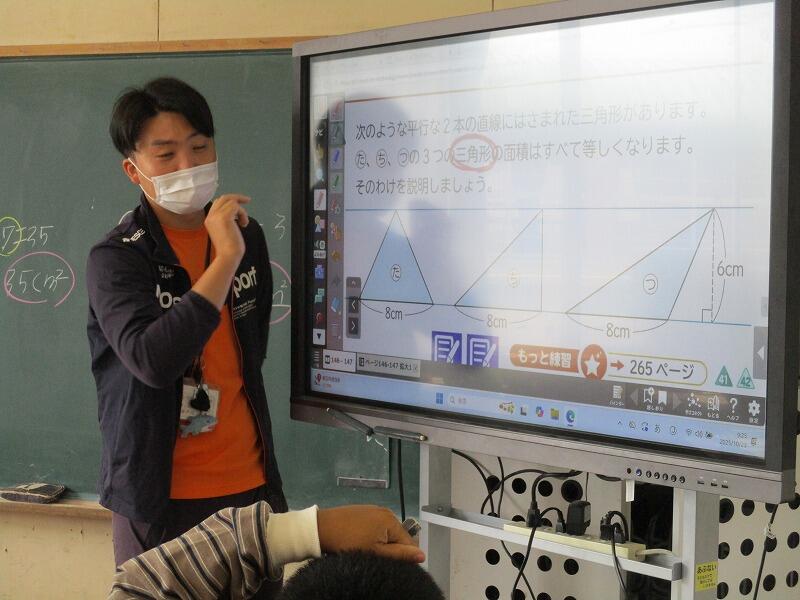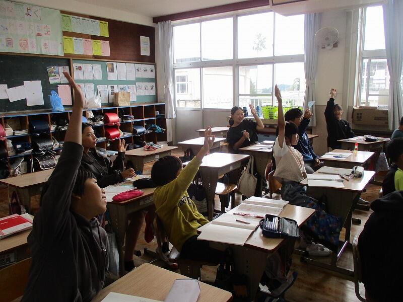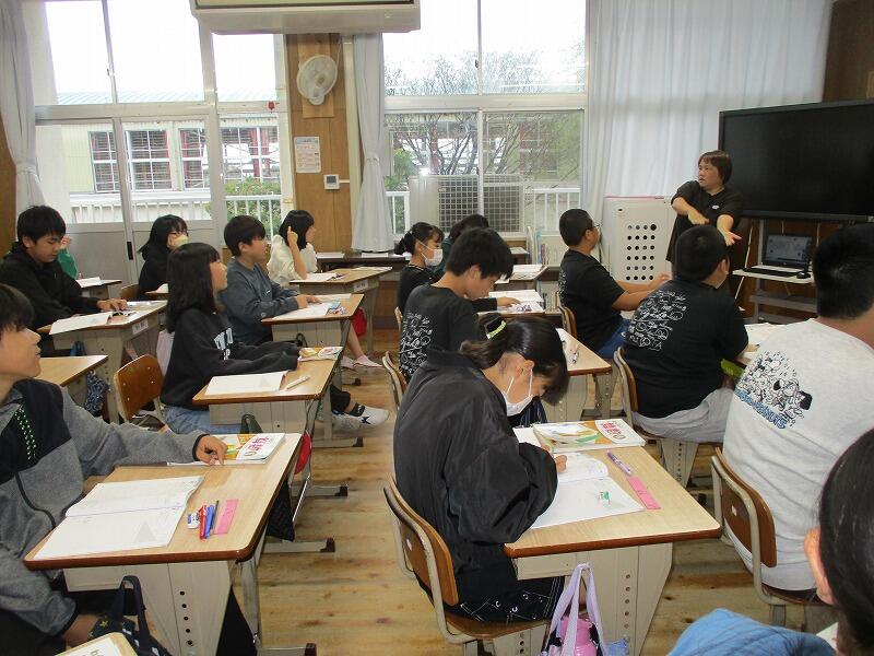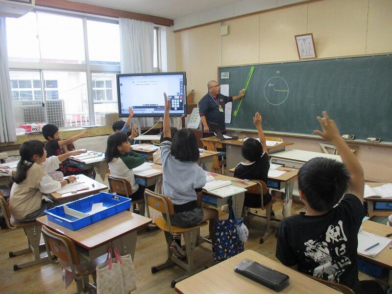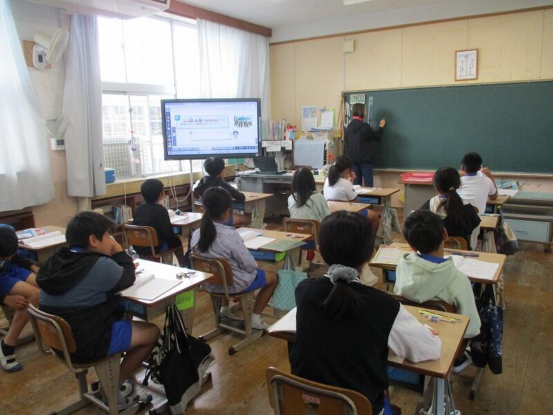 3年生の学級担任の先生が、レインボーフェスタの準備で出張に行かれたため、今日は、代わりに教務主任の先生が授業をしてくださいました。