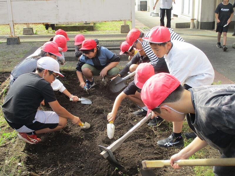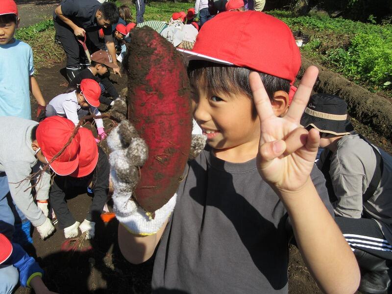 今日の3・4時間目に、1・2年生は「おいもほり」をしました。