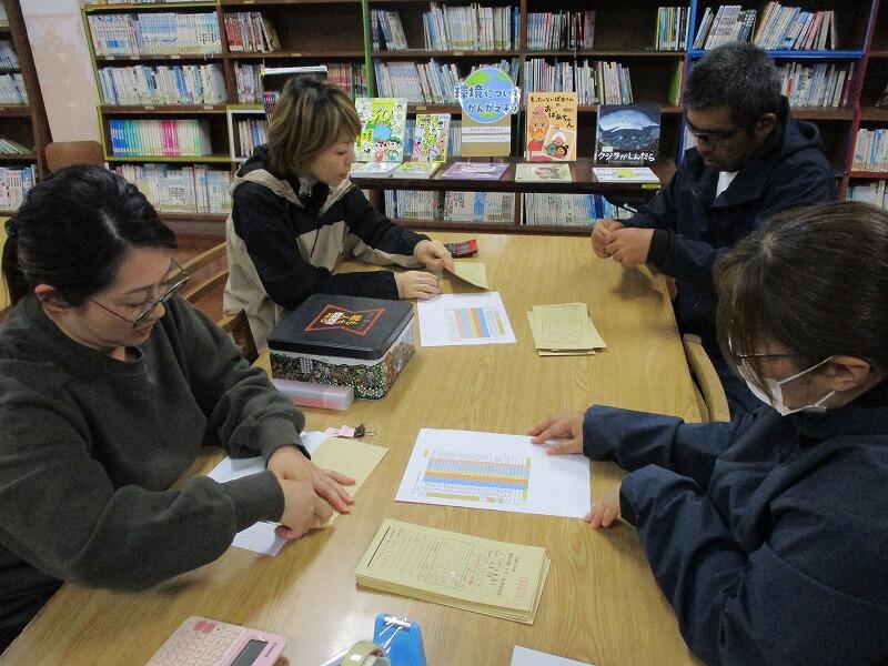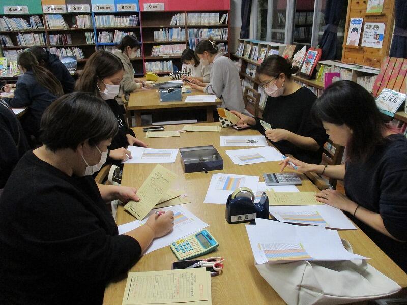 最後に、食券を各学年ごと必要枚数準備し、複数人で確認して封入する作業を行いました。皆さんの動きがとてもスムーズで、1時間あまりですべての作業を終えることができました。